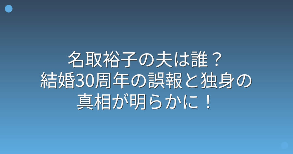名取裕子の夫は誰?結婚30周年の誤報と独身の真相が明らかに!