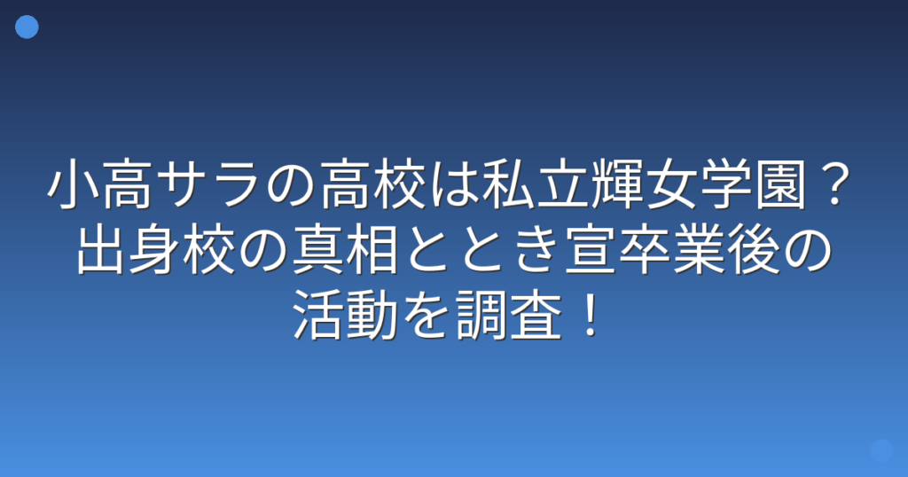小高サラの高校は私立輝女学園?出身校の真相ととき宣卒業後の活動を調査!