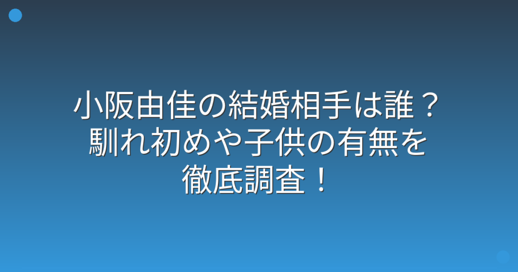小阪由佳の結婚相手は誰?馴れ初めや子供の有無を徹底調査!