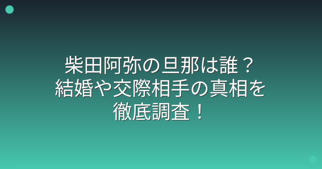 柴田阿弥の旦那は誰?結婚や交際相手の真相を徹底調査!