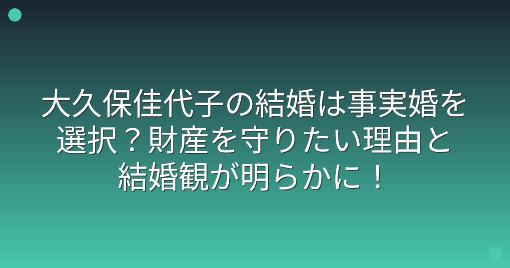 お笑いコンビ「オアシズ」のメンバーとして活躍する大久保佳代子さんが、結婚に対する独特の考え方を明かし、大きな話題となっていますね。 54歳の現在も独身を貫く大久保さんですが、もし今後結婚するなら「事実婚」を選択すると発言したことで、多くの注... -