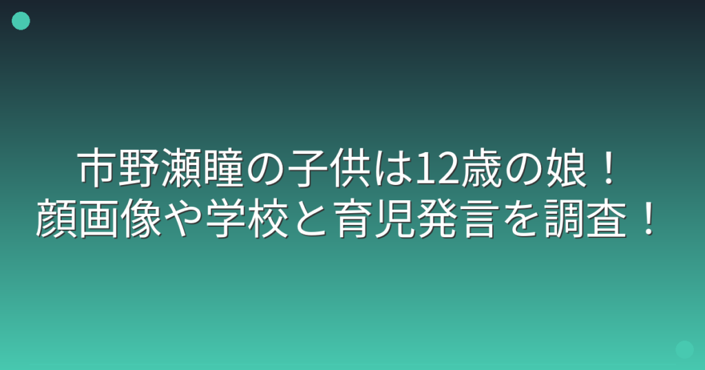 市野瀬瞳の子供は12歳の娘!顔画像や学校と育児発言を調査!