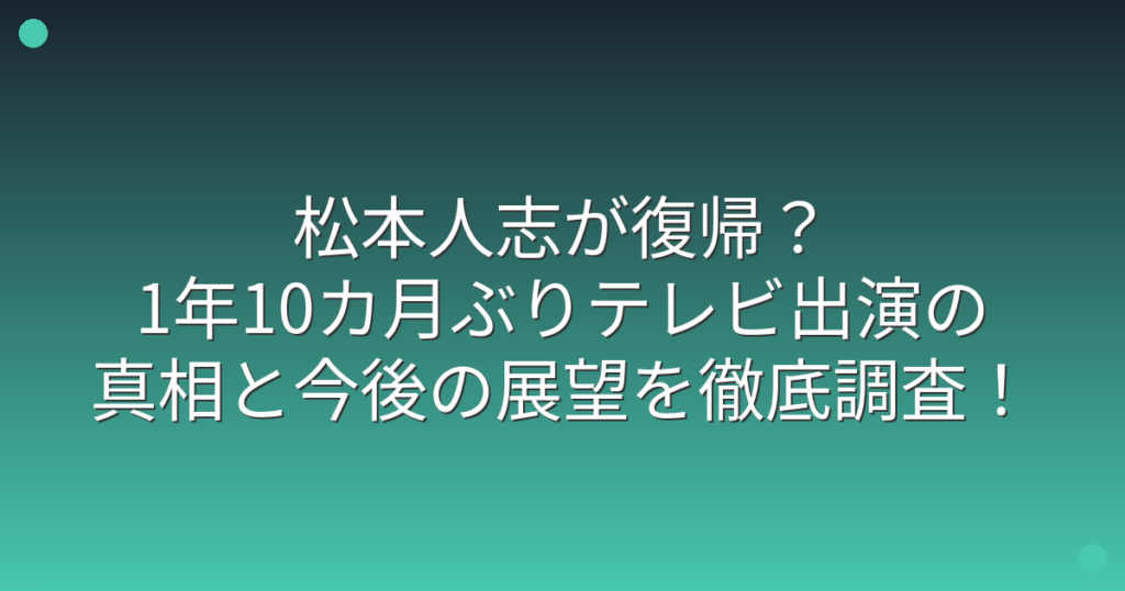 松本人志が復帰?1年10カ月ぶりテレビ出演の真相と今後の展望を徹底調査!
