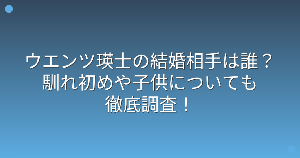 タレントのウエンツ瑛士さんの結婚について、ファンの間で大きな関心が寄せられていますね。 イギリス留学から帰国後、俳優としても活躍の場を広げているウエンツ瑛士さんですが、プライベートな結婚事情はどうなっているのでしょうか。 そこで今回は、ウ... -