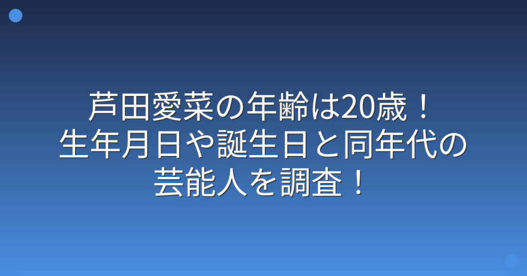 子役時代から活躍し続けている芦田愛菜さんが、すっかり大人になったと話題になっていますね。 テレビで見かけるたびに成長を感じる芦田愛菜さんですが、現在の年齢が気になっている方も多いのではないでしょうか。 そこで今回は、芦田愛菜さんの年齢や生... -