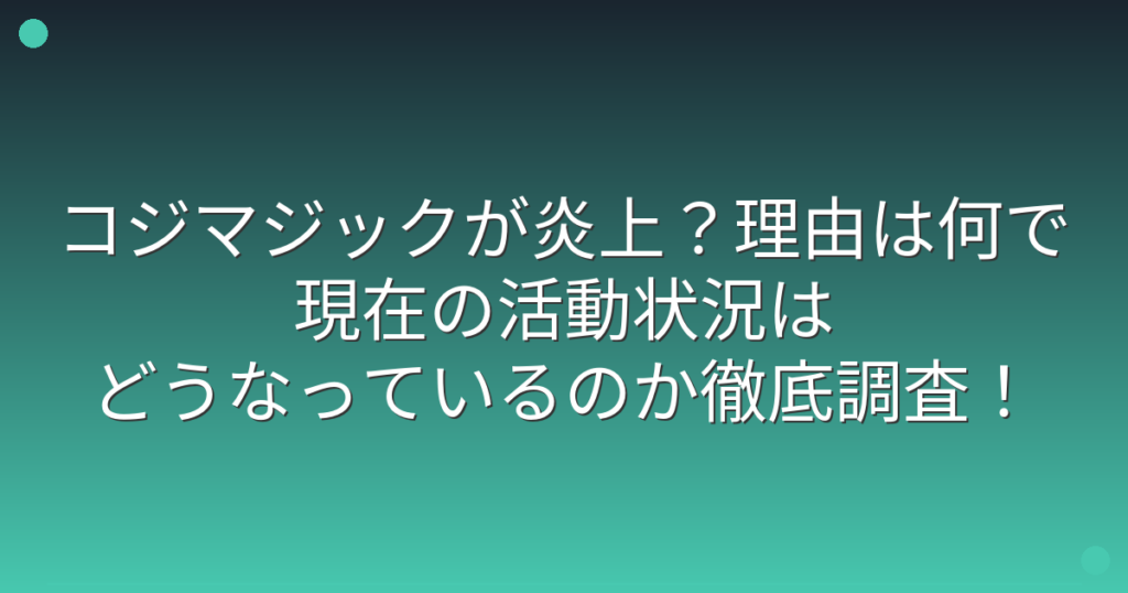 コジマジックが炎上?理由は何で現在の活動状況はどうなっているのか徹底調査!