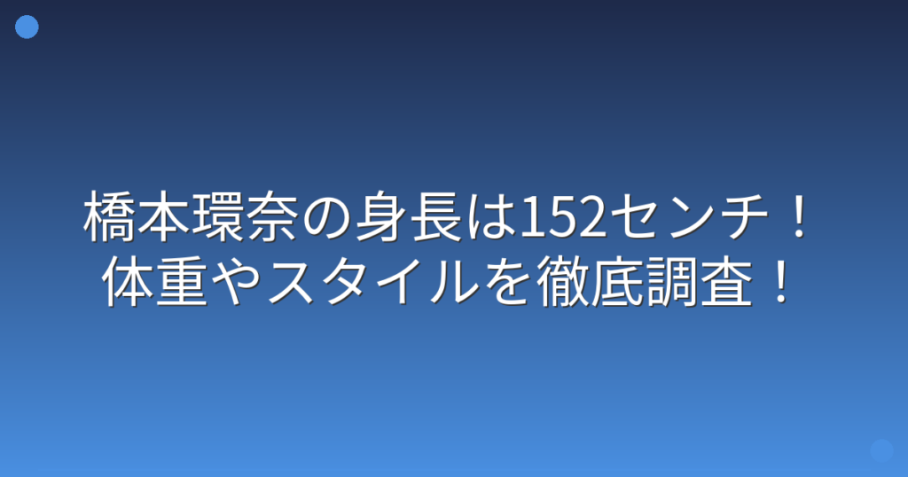 女優として大活躍中の橋本環奈さんですが、その身長やスタイルについて気になっている方も多いのではないでしょうか。 可愛らしいルックスと演技力で多くのファンを魅了している橋本環奈さんですが、実際の身長はどれくらいなのでしょうか。 そこで今回は... -