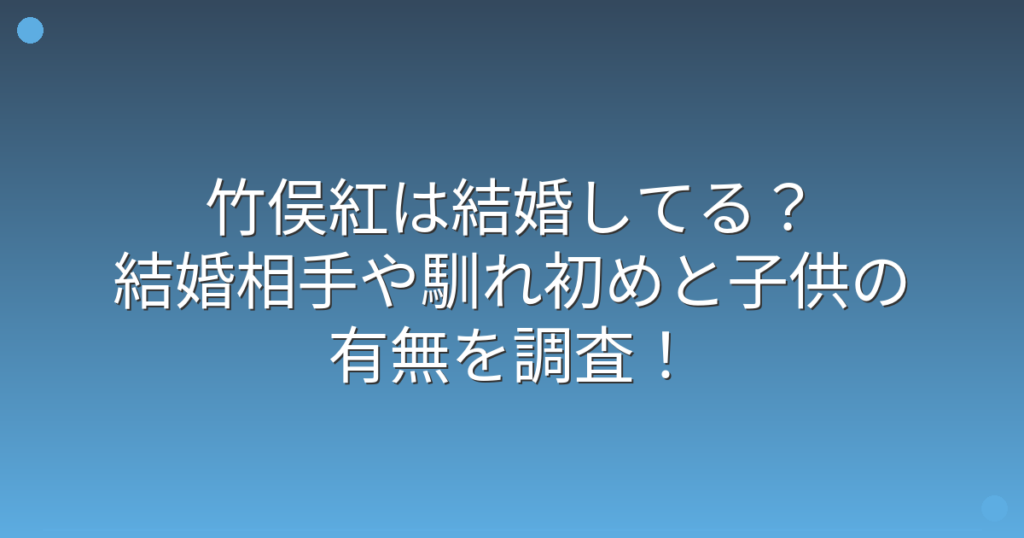 竹俣紅は結婚してる?結婚相手や馴れ初めと子供の有無を調査!