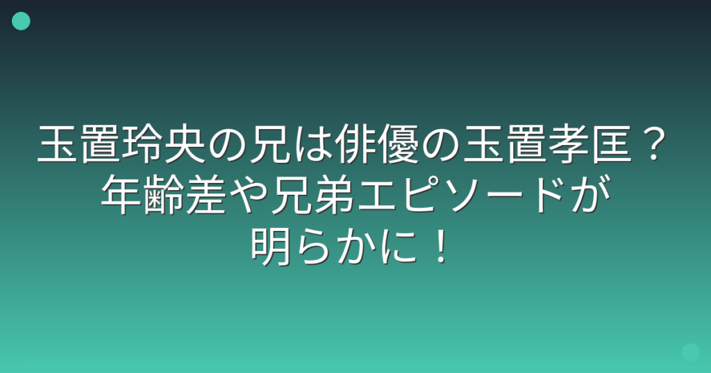 玉置玲央の兄は俳優の玉置孝匡?年齢差や兄弟エピソードが明らかに!