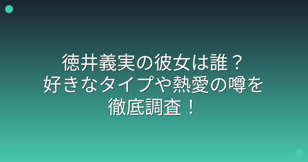 お笑いコンビ・チュートリアルの徳井義実さんの彼女について、ファンの間で話題になっていますね。 イケメン芸人として知られる徳井義実さんですが、現在交際相手はいるのでしょうか? そこで今回は、徳井義実さんの彼女や好きなタイプ、過去の熱愛の噂に... -