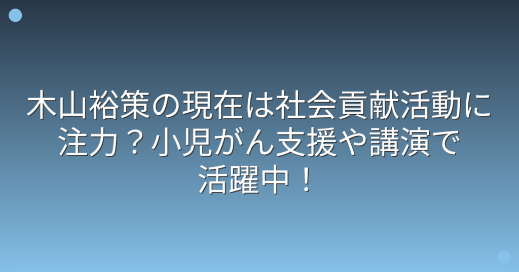 木山裕策の現在は社会貢献活動に注力?小児がん支援や講演で活躍中!