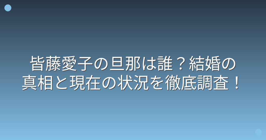 皆藤愛子の旦那は誰?結婚の真相と現在の状況を徹底調査!