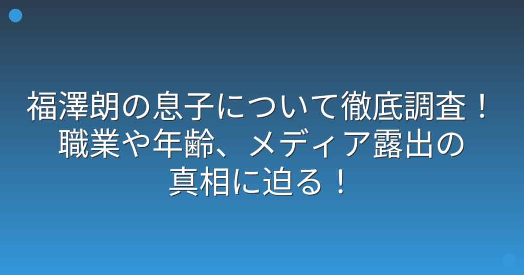 福澤朗の息子について徹底調査!職業や年齢、メディア露出の真相に迫る!