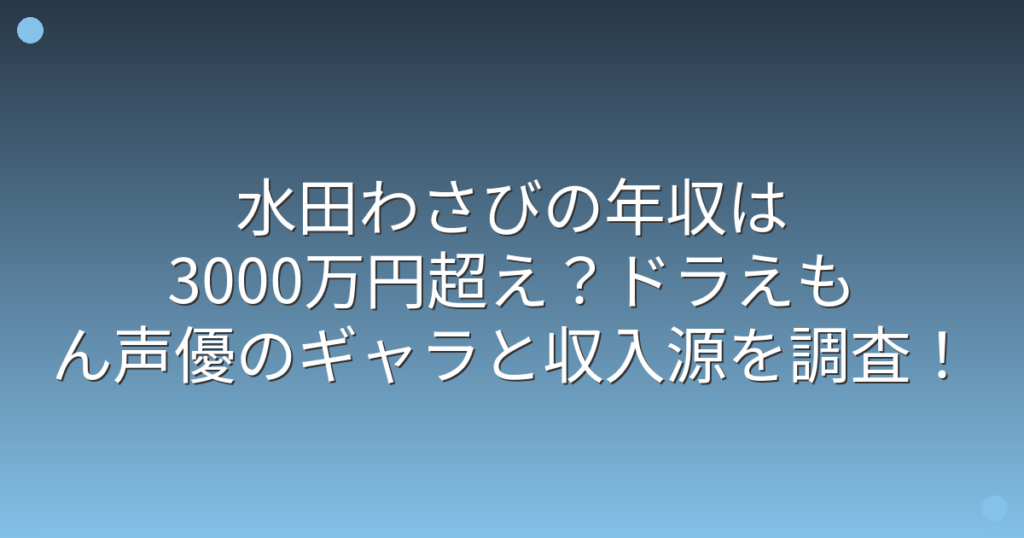 水田わさびの年収は3000万円超え?ドラえもん声優のギャラと収入源を調査!