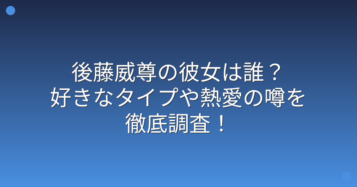 後藤威尊の彼女は誰?好きなタイプや熱愛の噂を徹底調査!