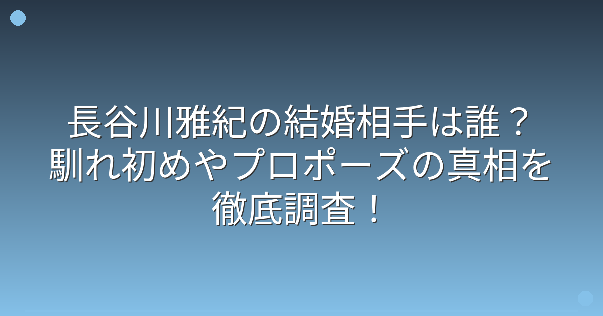 長谷川雅紀さんと結婚相手の馴れ初めについても、多くの人が興味を持っていますよね。