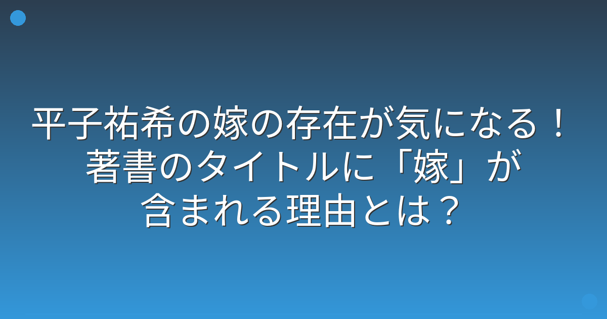 平子さんは著書のタイトルから結婚していることは明らかですが、嫁に関する具体的な情報は公表されていません。