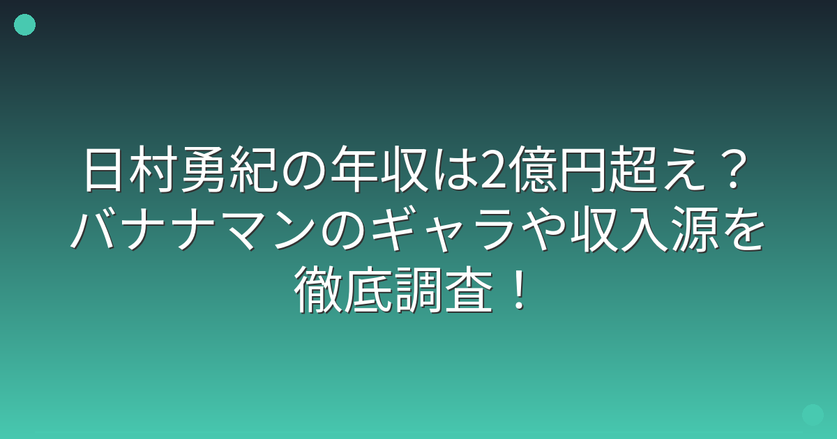 複数の報道によると、日村勇紀さんの年収は推定2億円以上と言われています。