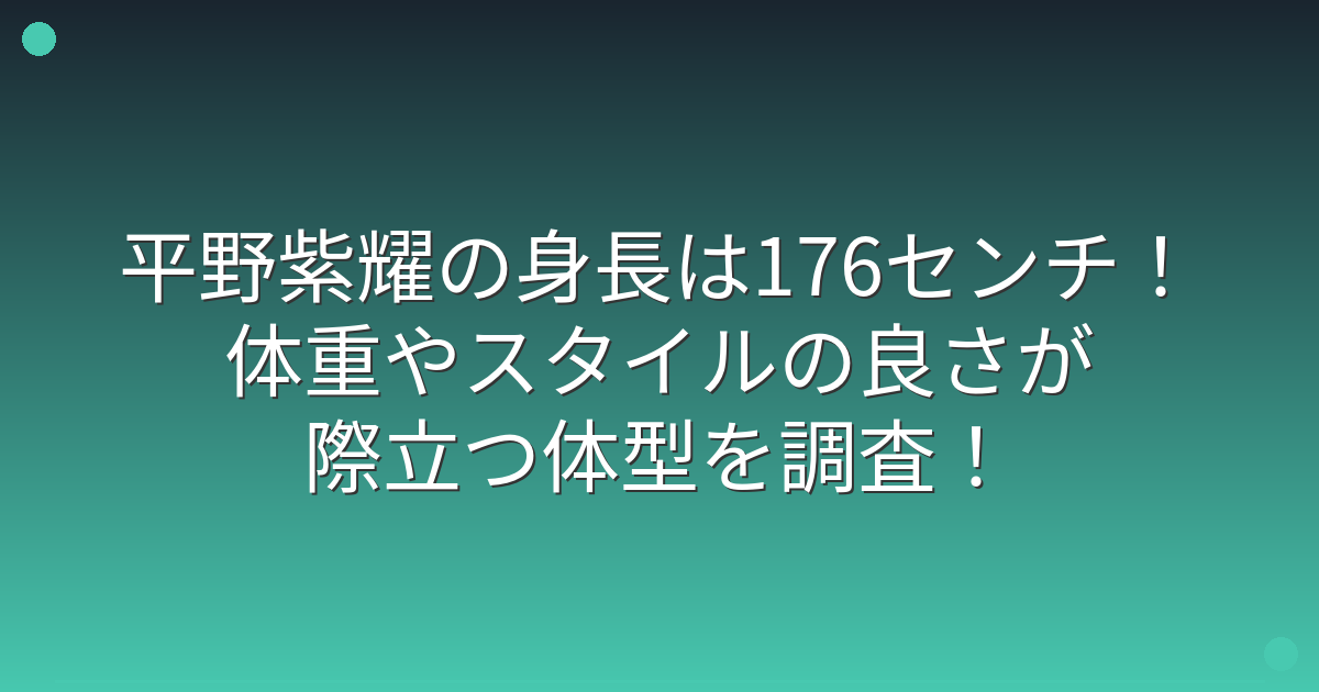 そこで今回は、平野紫耀さんの身長や体重、そしてスタイルの良さについて詳しく見ていきましょう!
