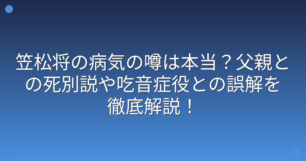 笠松将さんの病気に関する噂のもう一つの源として、父親との死別説があります。