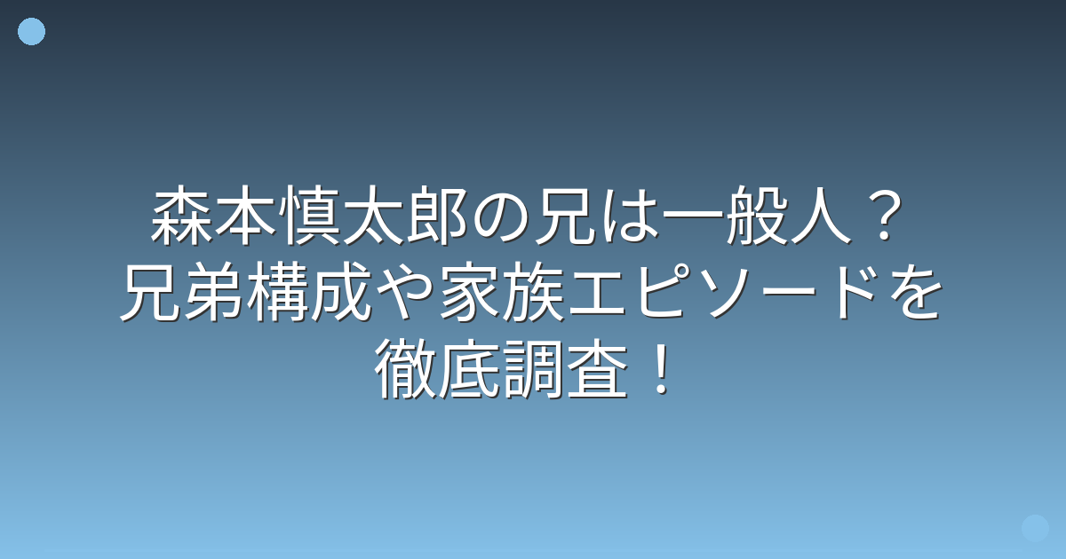 現時点では、森本慎太郎さんの兄は一般人として生活している可能性が高く、芸能活動はしていないと考えられます。
