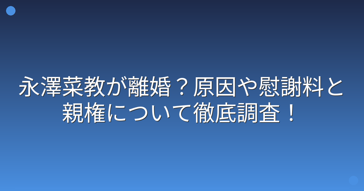 永澤菜教が離婚?原因や慰謝料と親権について徹底調査!