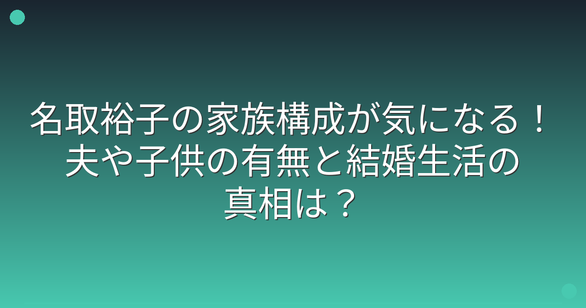 長年にわたり日本のドラマ界で活躍されている名取さんですが、プライベートな情報はあまり表に出ないため、結婚しているのか、子供はいるのかなど気になる方も多いようです。
