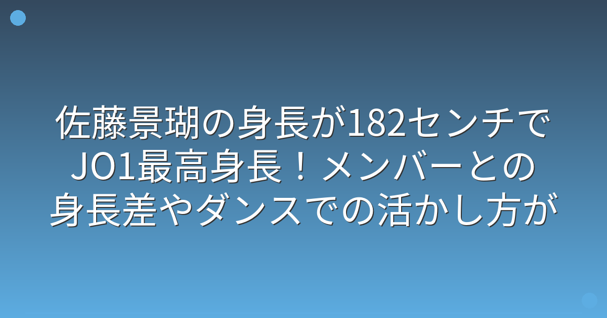 JO1の人気メンバー佐藤景瑚さんの身長について、ファンの間で大きな注目を集めています。