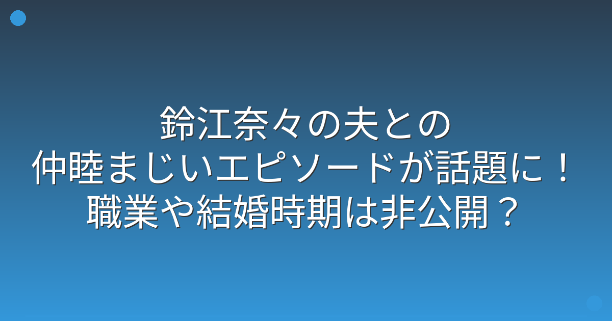 鈴江奈々さんの夫については、実は多くの情報が明かされていません。