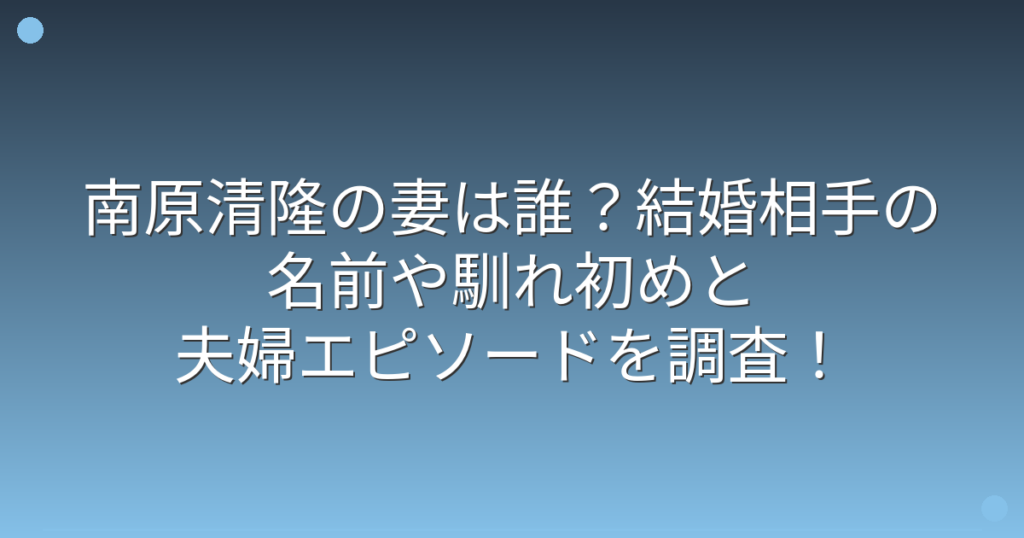 南原清隆の妻は誰?結婚相手の名前や馴れ初めと夫婦エピソードを調査!