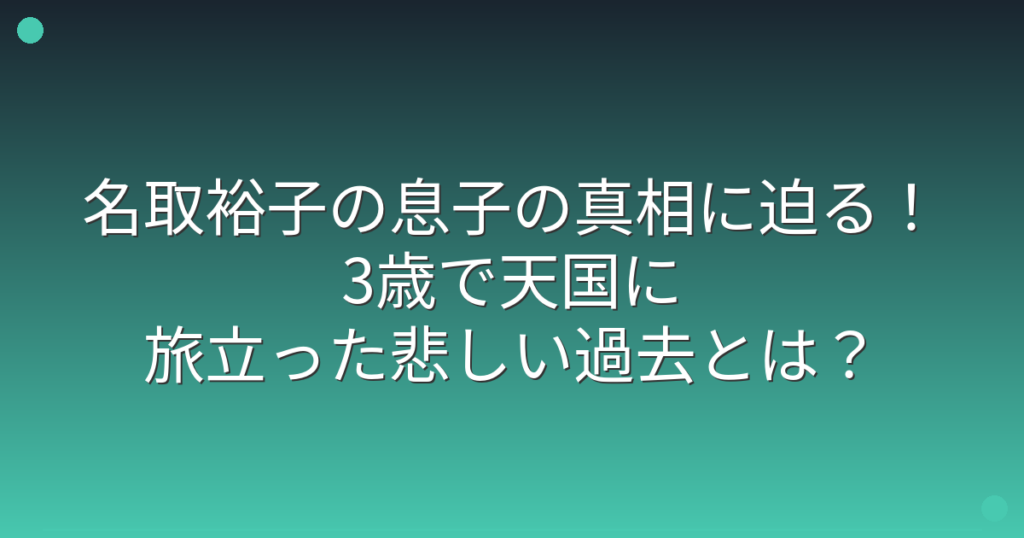 名取裕子の息子の真相に迫る!3歳で天国に旅立った悲しい過去とは?
