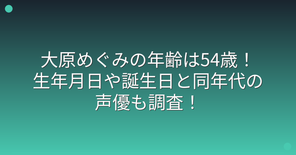 国民的アニメ「ドラえもん」ののび太役で知られる声優・大原めぐみさんの年齢が話題になっていますね。 長年にわたり活躍されている大原めぐみさんですが、実際の年齢や生年月日について気になる方も多いのではないでしょうか。 そこで今回は、大原めぐみ...