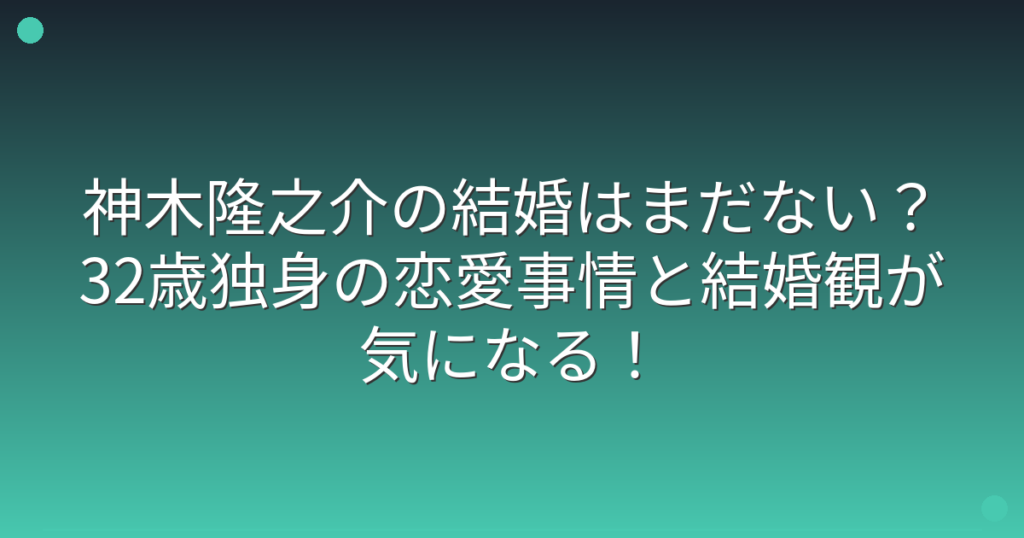 神木隆之介の結婚はまだない?32歳独身の恋愛事情と結婚観が気になる!