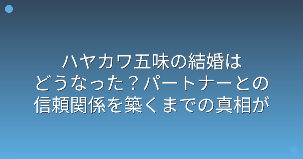ハヤカワ五味の結婚はどうなった?パートナーとの信頼関係を築くまでの真相が明らかに!