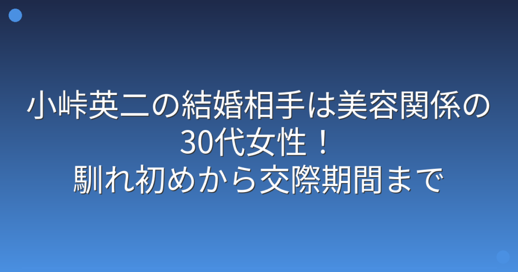 小峠英二の結婚相手は美容関係の30代女性!馴れ初めから交際期間まで徹底調査!