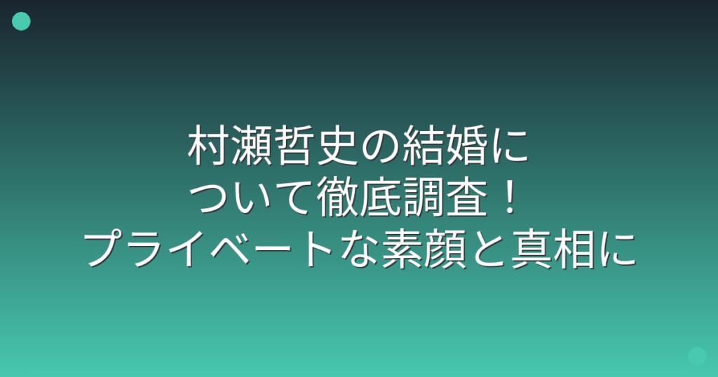 村瀬哲史の結婚について徹底調査!プライベートな素顔と真相に迫る!