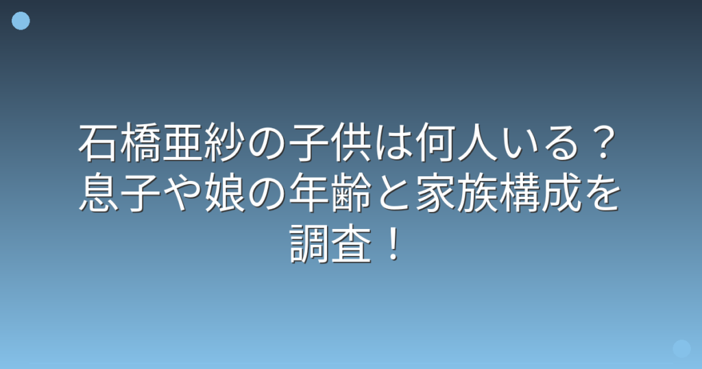 石橋亜紗の子供は何人いる?息子や娘の年齢と家族構成を調査!