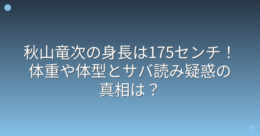 秋山竜次の身長は175センチ!体重や体型とサバ読み疑惑の真相は?