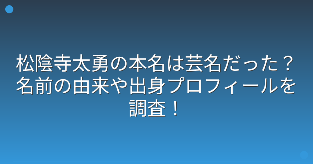 松陰寺太勇の本名は芸名だった?名前の由来や出身プロフィールを調査!