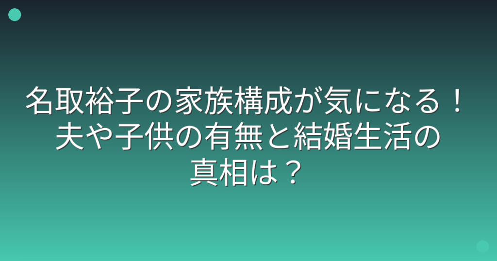 名取裕子の家族構成が気になる!夫や子供の有無と結婚生活の真相は?