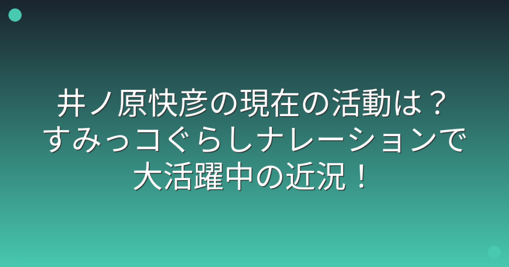井ノ原快彦の現在の活動は?すみっコぐらしナレーションで大活躍中の近況!