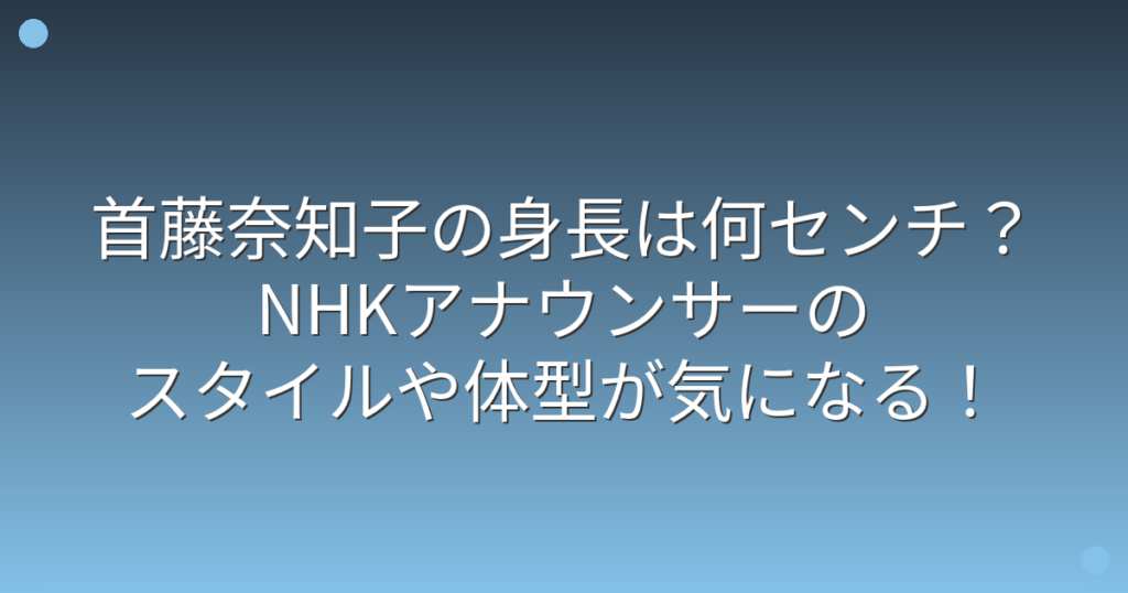 NHKの人気アナウンサーとして活躍する首藤奈知子さんが注目を集めています。 特に、首藤奈知子さんの身長やスタイルについて、視聴者の間で関心が高まっているようです。 そこで今回は、首藤奈知子さんの身長や体型について、詳しく見ていきましょう! 首...