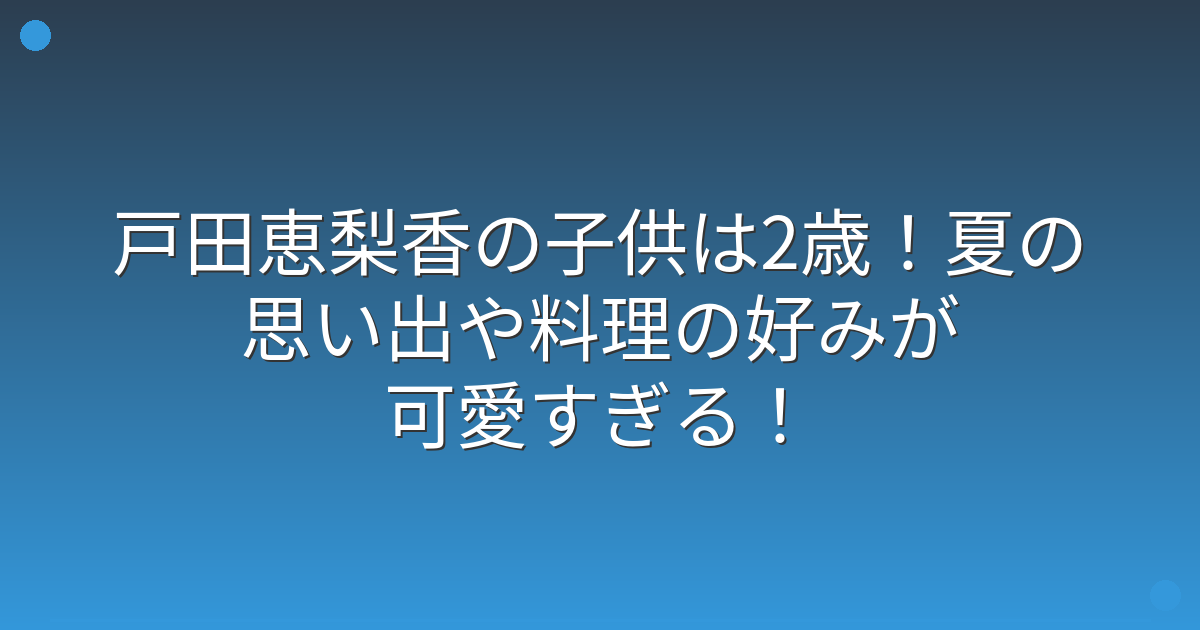 戸田恵梨香の子供は2歳!夏の思い出や料理の好みが可愛すぎる!