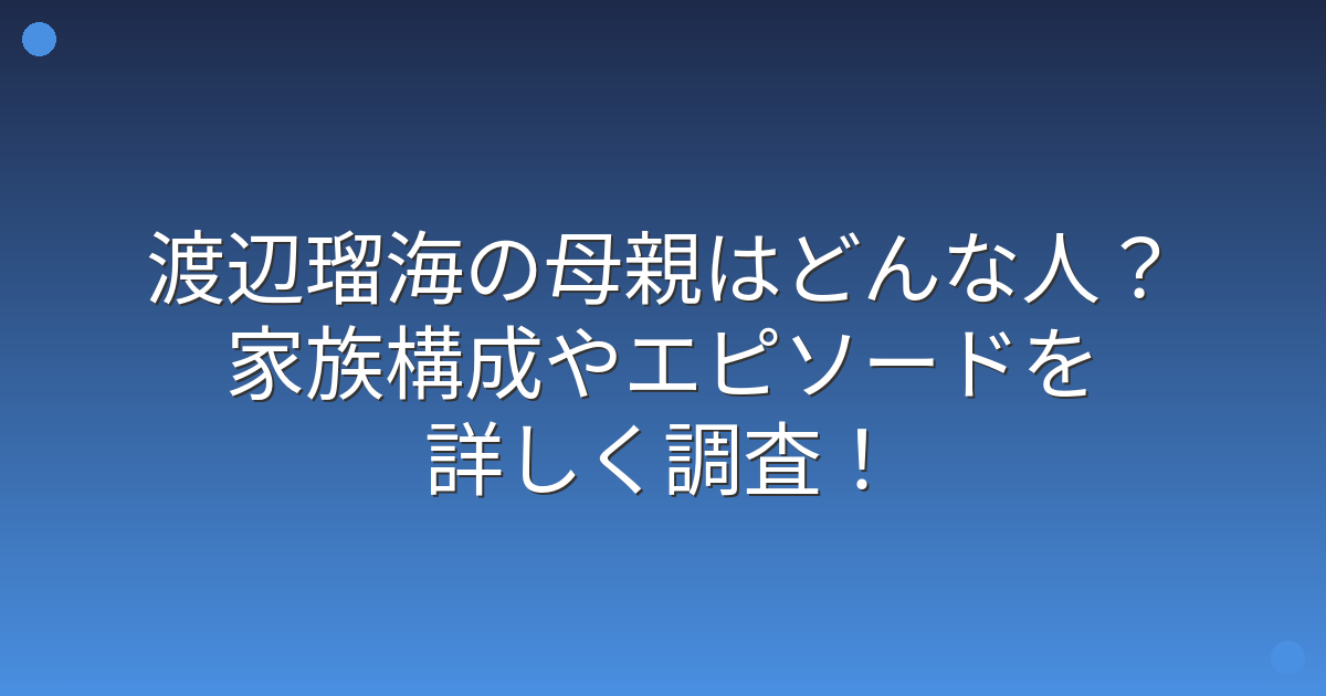 そこで今回は、渡辺瑠海さんの母親や家族構成、エピソードについて詳しく見ていきましょう!