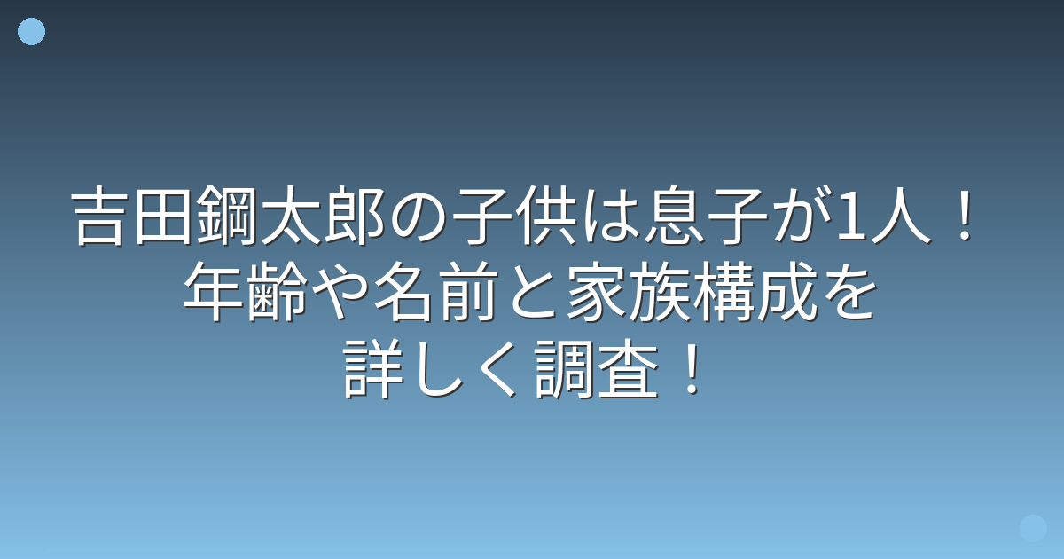 そこで今回は、吉田鋼太郎さんの子供について、息子さんの情報や家族構成について詳しく見ていきましょう!